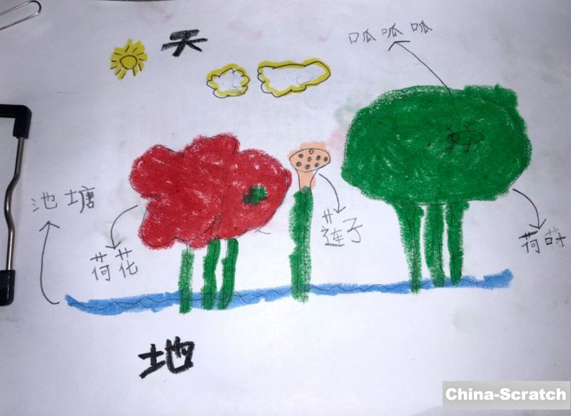 我说:“有首歌,荷塘月色,你也听过的。我们这个画是白天,那我们就叫荷塘阳光吧。”