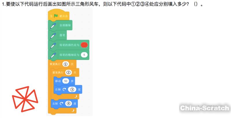 试题讲解:审题可知,该脚本要画出“三角形风车”,