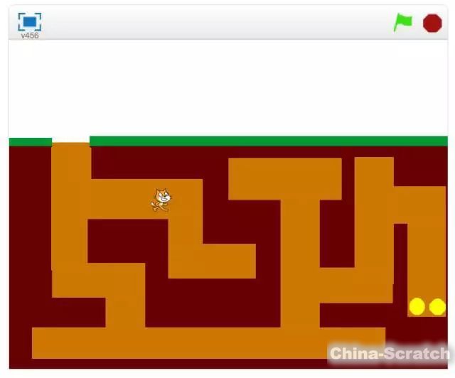 第五个游戏:Tunnel of Gold,自己亲手绘制迷宫图,小猫沿着橙色道路上下左右行走,目标是吃掉终点的金子。撞墙的时候可以自动退一步。