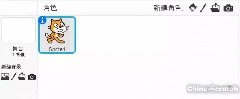 好了,接下来,我们看图2-1左侧中间白色区域部分,这是”舞台“;而舞台中的小猫称为”角色“。
