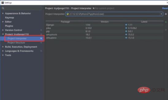 4、展开project选项,选择其下面的Project Interpreter选项,如下图所示1eF少儿编程网-https://www.pxcodes.com